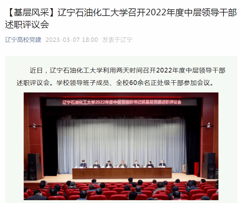 编者按:近日,辽宁高校党建微信公众号对我校召开2022年度中层领导干部述职评议会进行了宣传报道。现将相关报道转载如下: