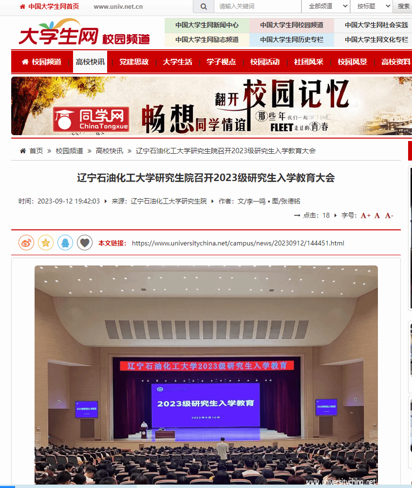 编者按:近日,中国大学生网媒体平台对我校研究生院召开2023级研究生入学教育大会进行了宣传报道。现将相关报道转载如下: