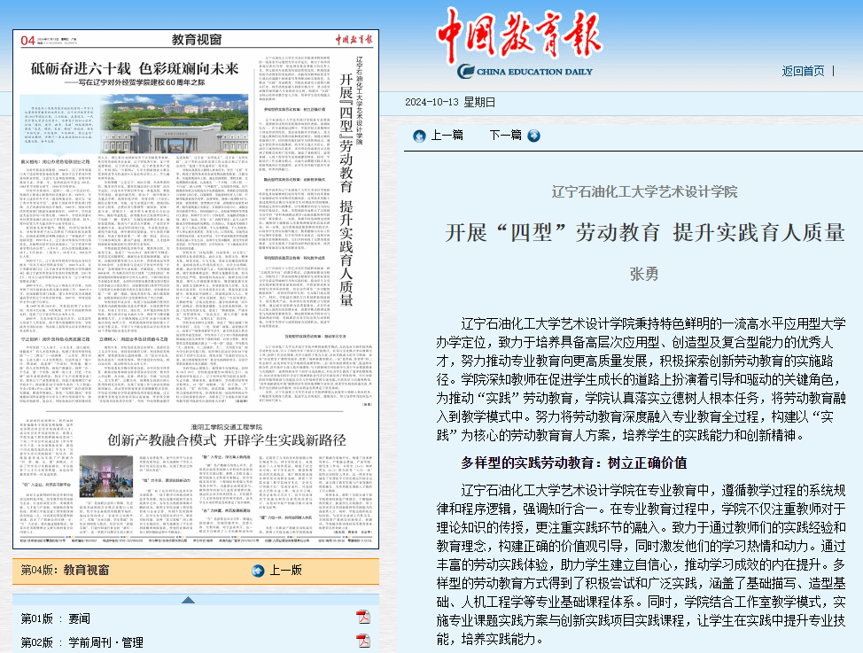 编者按:10月13日,中国教育报第4版对我校艺术设计学院张勇副院长撰写的文章《国产亚洲综合一区二区三区_亚洲欧美日韩中文天堂_尤物在线观看视频不卡无码_国产最新精品亚洲2025不卡_亚洲成Av人在线观看片水蜜桃艺术设计学院开展“四型”劳动教育,提升实践育人质量》进行了刊发报道。现将相关报道转载如下: