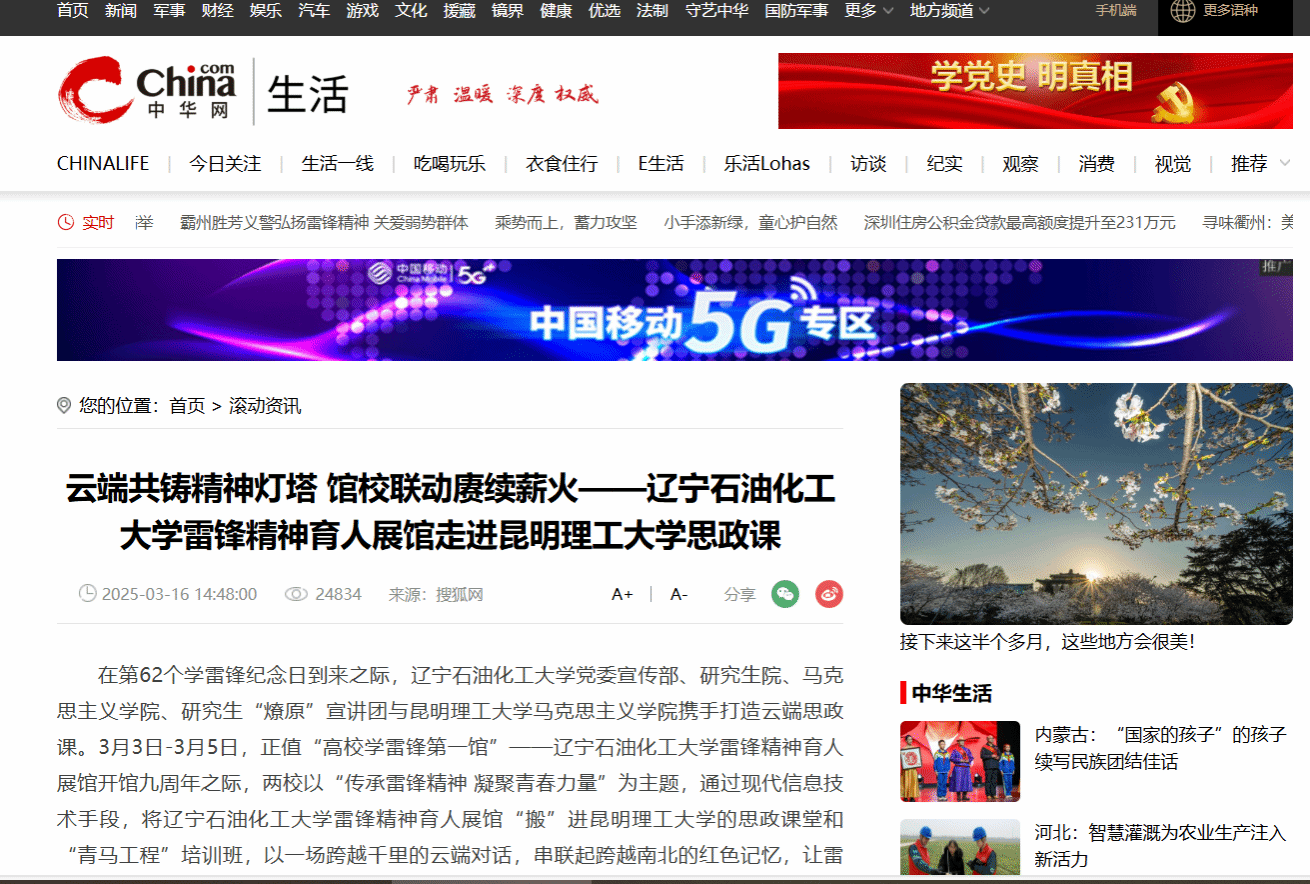 编者按:近日,中华网媒体平台对我校雷锋精神育人展馆走进昆明理工大学思政课活动进行了转载报道。现将相关报道转载如下:
